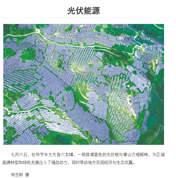 7月6日,貴州日?qǐng)?bào)頭版頭條報(bào)道了由中國(guó)水電一局承建的大方光伏項(xiàng)目。鏡頭下,一排排湛藍(lán)色的光伏板與青山交相輝映,為區(qū)域能源轉(zhuǎn)型和綠色發(fā)展注入了強(qiáng)勁動(dòng)力,同時(shí)帶動(dòng)地方實(shí)現(xiàn)經(jīng)濟(jì)與生態(tài)雙贏。