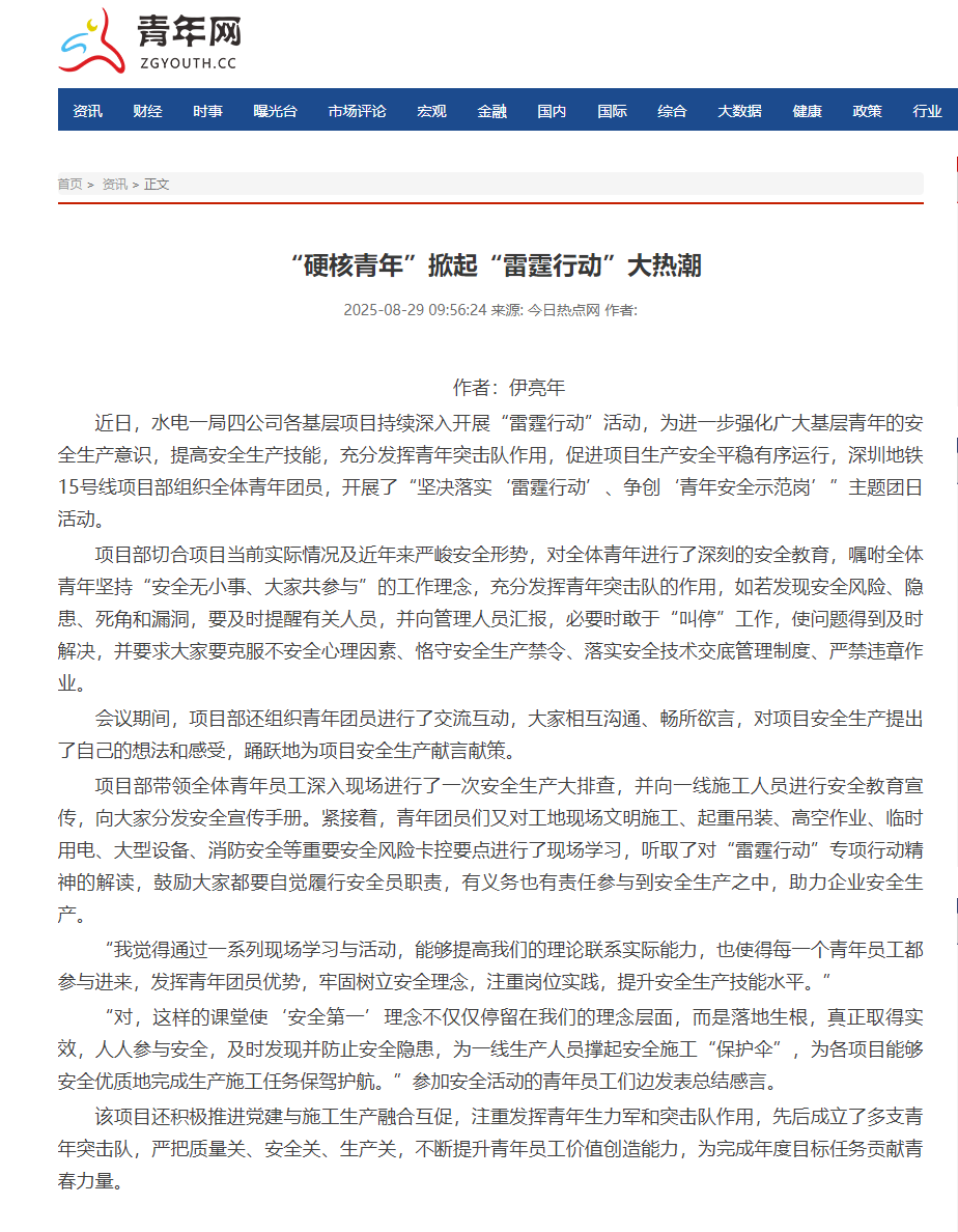 近日,水電一局四公司各基層項目持續深入開展“雷霆行動”活動,為進一步強化廣大基層青年的安全生產意識,提高安全生產技能,充分發揮青年突擊隊作用,促進項目生產安全平穩有序運行,深圳地鐵15號線項目部組織全體青年團員,開展了“堅決落實‘雷霆行動’、爭創‘青年安全示范崗’”主題團日活動。 項目部切合項目當前實際情況及近年來嚴峻安全形勢,對全體青年進行了深刻的安全教育,囑咐全體青年堅持“安全無小事、大家共參與”的工作理念,充分發揮青年突擊隊的作用,如若發現安全風險、隱患、死角和漏洞,要及時提醒有關人員,并向管理人員匯報,必要時敢于“叫?!惫ぷ鳎箚栴}得到及時解決,并要求大家要克服不安全心理因素、恪守安全生產禁令、落實安全技術交底管理制度、嚴禁違章作業。 會議期間,項目部還組織青年團員進行了交流互動,大家相互溝通、暢所欲言,對項目安全生產提出了自己的想法和感受,踴躍地為項目安全生產獻言獻策。 項目部帶領全體青年員工深入現場進行了一次安全生產大排查,并向一線施工人員進行安全教育宣傳,向大家分發安全宣傳手冊。緊接著,青年團員們又對工地現場文明施工、起重吊裝、高空作業、臨時用電、大型設備、消防安全等重要安全風險卡控要點進行了現場學習,聽取了對“雷霆行動”專項行動精神的解讀,鼓勵大家都要自覺履行安全員職責,有義務也有責任參與到安全生產之中,助力企業安全生產。 “我覺得通過一系列現場學習與活動,能夠提高我們的理論聯系實際能力,也使得每一個青年員工都參與進來,發揮青年團員優勢,牢固樹立安全理念,注重崗位實踐,提升安全生產技能水平。” “對,這樣的課堂使‘安全第一’理念不僅僅停留在我們的理念層面,而是落地生根,真正取得實效,人人參與安全,及時發現并防止安全隱患,為一線生產人員撐起安全施工“保護傘”,為各項目能夠安全優質地完成生產施工任務保駕護航。”參加安全活動的青年員工們邊發表總結感言。 該項目還積極推進黨建與施工生產融合互促,注重發揮青年生力軍和突擊隊作用,先后成立了多支青年突擊隊,嚴把質量關、安全關、生產關,不斷提升青年員工價值創造能力,為完成年度目標任務貢獻青春力量。 http://www.zhqnw.lwgcw.com/zixun/2025/0829/082025_790.html |