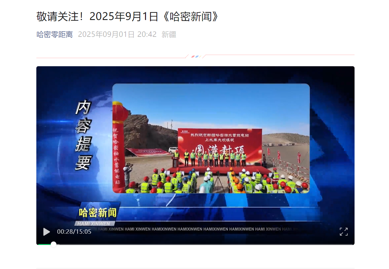 9月1日,哈密新聞聯播對水電一局承建的新疆哈密抽水蓄能電站上水庫大壩填筑圓滿封頂進行了專題報道。 8月30日,由水電一局承建的新疆哈密抽水蓄能電站上水庫大壩填筑圓滿封頂,按期實現上水庫建設關鍵節點目標,標志著項目建設邁入新階段,為后續碾壓砂漿、混凝土面板施工、水庫蓄水等工作奠定堅實基礎。 新疆哈密抽水蓄能電站上水庫大壩采用鋼筋混凝土面板堆石壩設計,最大壩高49米,總長1298.22米,填筑總方量約151.3萬立方米。 自大壩填筑施工啟動,項目部面臨哈密戈壁極端氣候、征地難、料源分散、運輸受限等多重挑戰。為此,項目部主動作為,多次組織會議,創新采用“分區作業、流水施工”模式提升施工效率;搭建“智慧建造管理平臺”,啟用無人駕駛等設備實現動態監管,提升壓實度合格率,還推行協同作業模式提升施工精度;同時制定極端天氣專項應急預案,建立氣象預警機制,確保施工天數。 新疆哈密抽水蓄能電站是國家“十四五”能源發展規劃重點項目,總裝機容量120萬千瓦,建成后將成為西北電網重要的調峰、調頻、儲能基地,每年可消納新能源電量超15億千瓦時,對優化新疆能源結構、保障電網安全穩定運行具有重要作用。下一步,水電一局新疆哈密項目部將持續秉持“自強不息、勇于超越”的企業精神,全力推進下水庫攔河壩、攔沙壩等關鍵部位施工,深化數字化、智慧化建造應用,力爭項目早日建成投產,為服務國家“雙碳”目標與新疆經濟社會高質量發展貢獻央企力量。 https://mp.weixin.qq.com/s/TZE61ZUXi2D0a0pZqSU1oA |