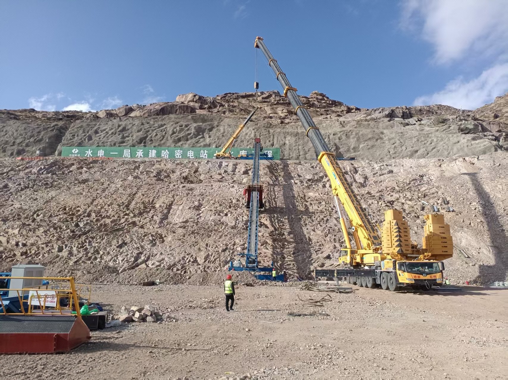 9月21日,在新疆哈密抽水蓄能電站項(xiàng)目施工現(xiàn)場(chǎng),一場(chǎng)高難度的無砂混凝土攤鋪機(jī)構(gòu)件吊裝作業(yè)順利完成。此次作業(yè)創(chuàng)新性采用50噸汽車起重機(jī)與700噸全地面起重機(jī)“雙機(jī)協(xié)同”模式,憑借科學(xué)的方案規(guī)劃與精準(zhǔn)的操作配合,成功將重達(dá)30噸的無砂混凝土攤鋪機(jī)預(yù)制構(gòu)件平穩(wěn)吊裝至指定安裝位置,為項(xiàng)目關(guān)鍵工序的推進(jìn)奠定了堅(jiān)實(shí)基礎(chǔ)。 此次吊裝的無砂混凝土攤鋪機(jī)構(gòu)件,是項(xiàng)目核心施工內(nèi)容的重要施工部件,長約60米,起吊高度約47米。項(xiàng)目技術(shù)團(tuán)隊(duì)經(jīng)過多輪方案論證,最終確定采用“主吊+溜尾”的雙機(jī)協(xié)作方案:由700噸全地面起重機(jī)擔(dān)任“主吊”,負(fù)責(zé)承受構(gòu)件大部分重量并完成垂直起升與水平轉(zhuǎn)運(yùn);50噸汽車起重機(jī)擔(dān)任“溜尾吊”,輔助調(diào)整構(gòu)件姿態(tài),避免吊裝過程中因重心偏移導(dǎo)致構(gòu)件晃動(dòng)或磕碰。 吊裝作業(yè)前,現(xiàn)場(chǎng)已完成全方位準(zhǔn)備工作。700噸吊車停靠在構(gòu)件安裝位置側(cè)方的庫盆內(nèi);50噸吊車則停放在構(gòu)件存放區(qū)端部環(huán)庫路上,通過輔助吊點(diǎn)與構(gòu)件尾部連接。安全管理人員對(duì)兩臺(tái)吊車的性能參數(shù)、吊具強(qiáng)度、地基承載力進(jìn)行了反復(fù)核查,同時(shí)在作業(yè)半徑內(nèi)設(shè)置硬質(zhì)隔離圍擋與警示標(biāo)識(shí),確保無關(guān)人員遠(yuǎn)離作業(yè)區(qū)域。 上午9時(shí)10分,隨著現(xiàn)場(chǎng)總指揮一聲令下,吊裝作業(yè)正式開始。主吊率先緩緩起鉤,將構(gòu)件頭部平穩(wěn)抬起至離地面,此時(shí)溜尾吊同步啟動(dòng),配合主吊將構(gòu)件尾部托起,使構(gòu)件保持水平狀態(tài)。在對(duì)講機(jī)的統(tǒng)一指令下,兩名吊車操作員默契配合:主吊緩慢提升主鉤,同時(shí)根據(jù)構(gòu)件姿態(tài)微調(diào)吊臂角度;溜尾吊則根據(jù)主吊的移動(dòng)節(jié)奏,逐步調(diào)整吊點(diǎn)高度,始終保持構(gòu)件穩(wěn)定。 當(dāng)構(gòu)件被轉(zhuǎn)運(yùn)至安裝位置正上方時(shí),現(xiàn)場(chǎng)進(jìn)入精準(zhǔn)對(duì)位階段。技術(shù)人員通過全站儀實(shí)時(shí)監(jiān)測(cè)構(gòu)件位置偏差,指揮主吊進(jìn)行毫米級(jí)微調(diào);溜尾吊則適時(shí)調(diào)整吊力,輔助構(gòu)件完成角度校準(zhǔn)。整個(gè)過程中,兩臺(tái)吊車的動(dòng)作銜接流暢,構(gòu)件始終保持平穩(wěn),未出現(xiàn)絲毫晃動(dòng)。經(jīng)過近20分鐘的精準(zhǔn)操作,無砂混凝土攤鋪機(jī)構(gòu)件成功落入安裝支座,位置偏差控制在5毫米以內(nèi),完全滿足設(shè)計(jì)要求。 此次雙機(jī)協(xié)同吊裝的難點(diǎn),在于無砂混凝土攤鋪機(jī)構(gòu)件的重心把控和兩臺(tái)吊車的動(dòng)作同步性。通過前期反復(fù)模擬和現(xiàn)場(chǎng)嚴(yán)格管控,不僅確保了作業(yè)安全,更大幅提升了吊裝效率,比原定計(jì)劃提前1.5小時(shí)完成任務(wù)。該無砂混凝土攤鋪機(jī)構(gòu)件的成功安裝,將為后續(xù)面板工程施工創(chuàng)造有利條件,項(xiàng)目團(tuán)隊(duì)也將以此為契機(jī),為工程高質(zhì)量全速推進(jìn)提供有力保障。 |